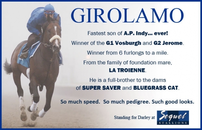 | G1-Winning A. P. Indy Stallion Girolamo Enters Stud in 2012 With Ideal Combination of Credentials |