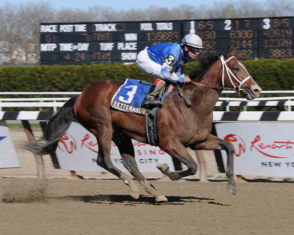 Putting a decisive last-to-first move in the stretch, Winter Park Partners' Zetterholm (Silver Train) scored a victory - his third straight - in his stakes debut on Friday afternoon in Aqueduct's one-mile, ,000 Patsyprospect Stakes for New York-bred three-year-olds.